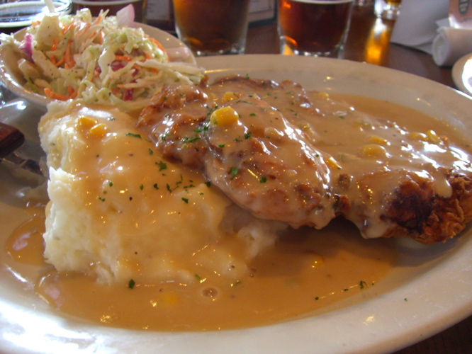 My chicken fried chicken was pretty average too. My biggest complaint was that there just wasn’t enough batter on the chicken. Take note guys, the fried outside is always more important than the inside. At the end of the day, chicken is chicken and beef is beef, but crispy, perfectly spiced, crunchy awesomeness is forever. The potatoes were nicely done and the gravy was rich and savory, but with the chicken falling flat, the dish was a flop overall.