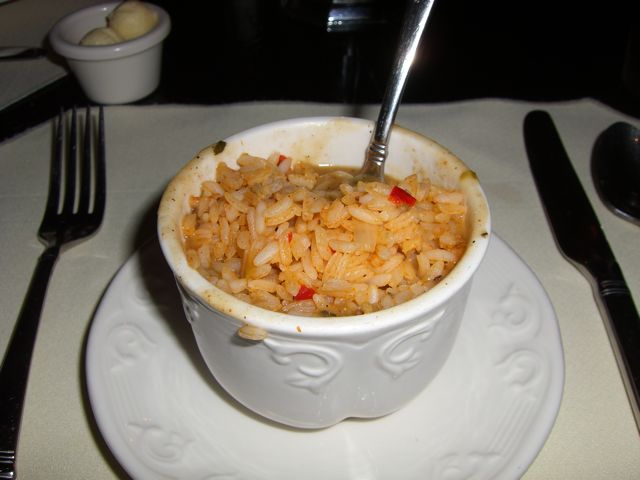 The meal started off with a choice of soup or salad. I’ve never been a big salad guy, so I opted for the soup, a gumbo. The gumbo was a rice topped, creamy stew/soup. I couldn’t really distinguish the ingredients because it was pretty bland overall. The rice added a nice texture change, but overall the dish needed more seasoning. The other cause for concern was the fact that the meat in the gumbo (chicken, perhaps?) was in the form of little cubes that reminded me of diced spam. This is not the quality that I was expecting from a meal of this caliber.