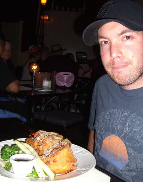 The ambiance of the restaurant is not as great as I thought it would be. But still, it’s way better than the rest of Disneyland, where you have to stakeout a table for 20 minutes just to be able to sit and eat. The location is cool, because it’s eternally night in the restaurant due to it’s proximity to Pirates. Eating your meal under the lamplight adds an element of relaxation that is a stark contrast to the stroller wielding uber-moms who dominate the rest of the park. Because of the low light conditions, it was difficult to get good pictures. I tried anyway.