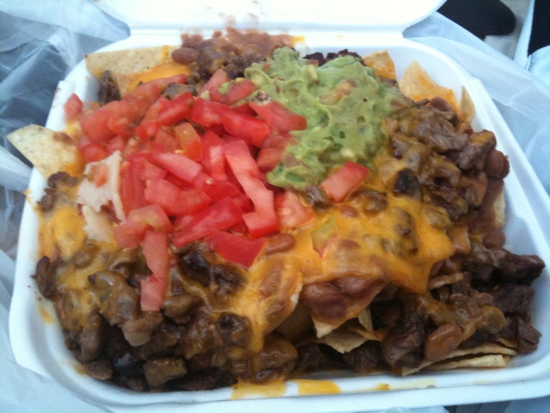 The best nachos in the world are at Freebird’s in Isla Vista, at 3am, when you’re so hammered that you can barely stand and you’re on the verge of making some very poor life decisions.  The nachos I had today are not those nachos.  But they were pretty darn good.  They give you a big container with enough nachos to comfortably feed two people.  Other places make you pay extra for sides like sour cream and guac, but Manny’s just throws it all in.  Here’s a picture of the madness: