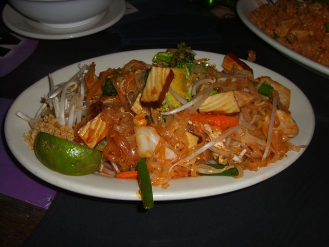Jackie’s pad thai was excellent. My favorite part about it was, surprisingly, the tofu. I find that tofu takes on the flavor of whatever you cook it in and since I like the taste of pad thai, the pad thai tofu added a whole dimension to the dish that I’d never thought possible. The noodles were just sticky enough and the veggies were crisp and delicious.